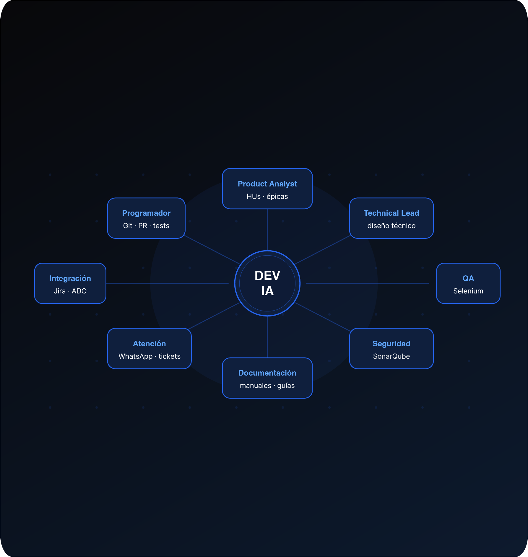 Sistema de agentes de IA que se integra a tu equipo de desarrollo, potenciando cada etapa del ciclo de desarollo.