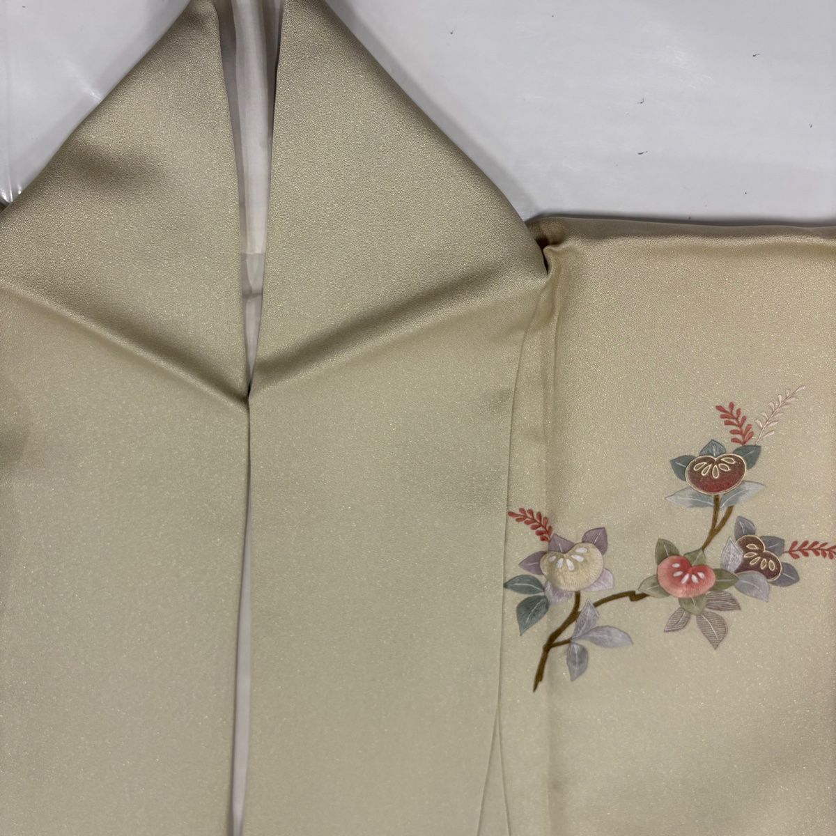 付下げ 身丈159.5 cm 裄丈62 S 袷 椿 枝梅 刺繍 金通し ベージュ 正絹