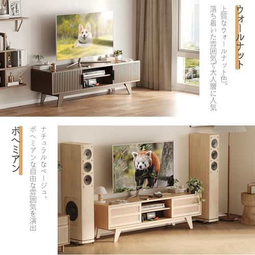 【おしゃれで耐久性のあるデザイン】Claiksのテレビボードは、室内空気汚染物の排出が少なく、環境に優しい木材を使用しています。メラミン樹脂を利用したため、水や熱、汚れに強く、お手入れも簡単です。ウォールナット/ボヘミアンの2色木目調をご用意しておりますので、お部屋に合わせてお好みの色をお選びください。どちらも日常生活にぴったりな落ち着いた色合いで、インテリアに自然な美しさを加え、家の雰囲気をさらに引き立てましょう!