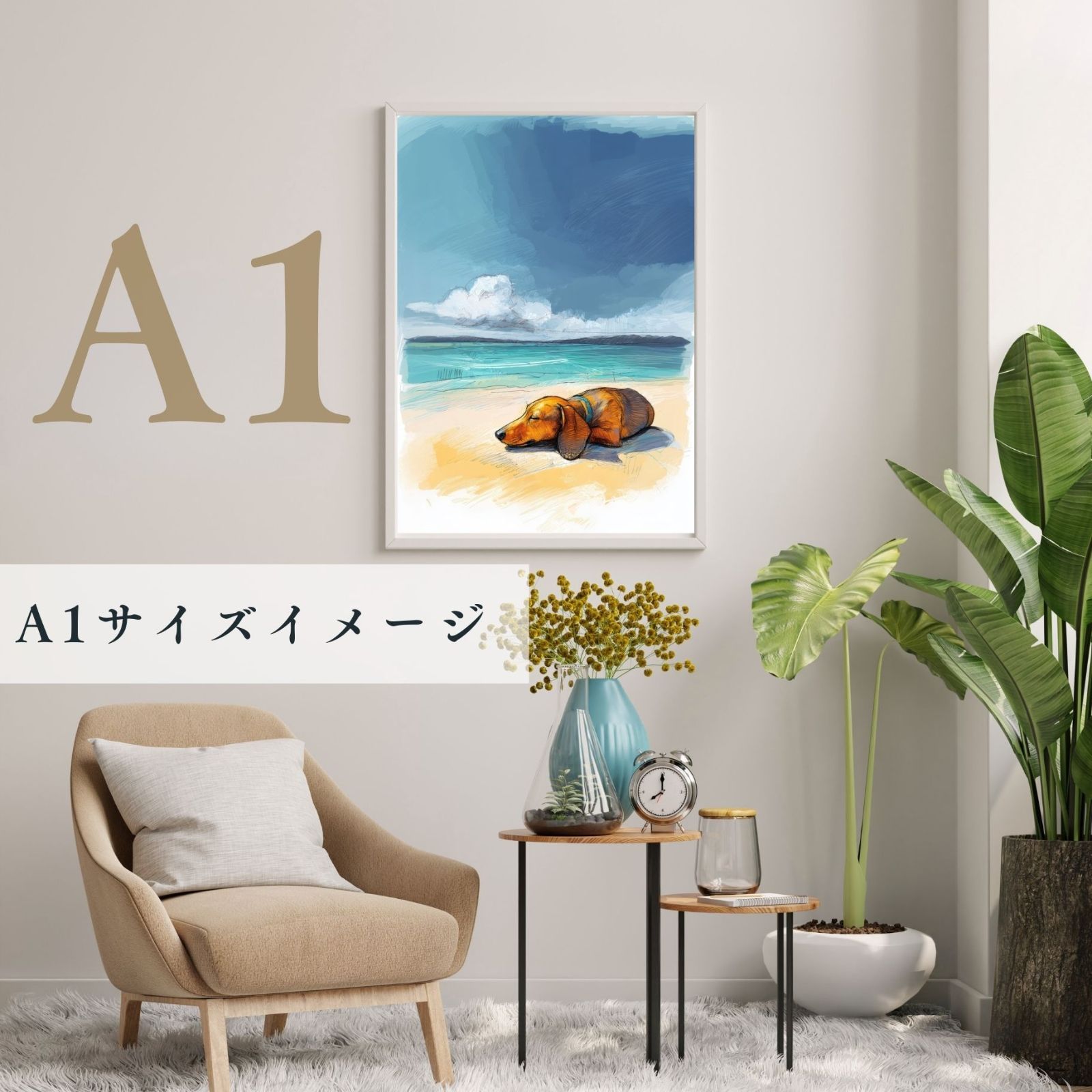 小さすぎず大きすぎない、※A2ポスターサイズ(420㎜ × 594㎜)の高画質・高品質のドッグアートプリントです。