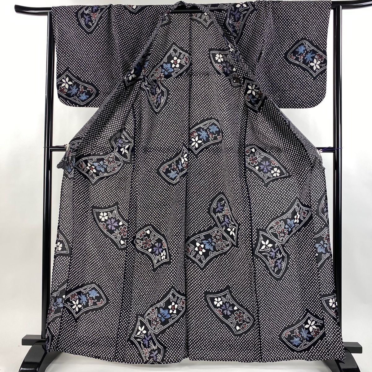 浴衣 身丈162.5 cm 裄丈64.5 M 絞り浴衣 草花 幾何学模様 黒 綿