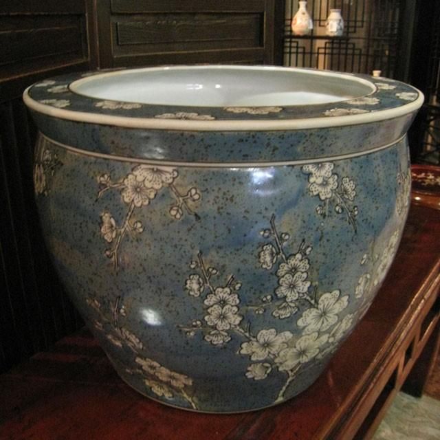 火鉢 青花丸大魚缶 白梅 大 水鉢 めだか鉢 金魚 水連鉢 鉢カバー 和モダン アジアン 特大 14号