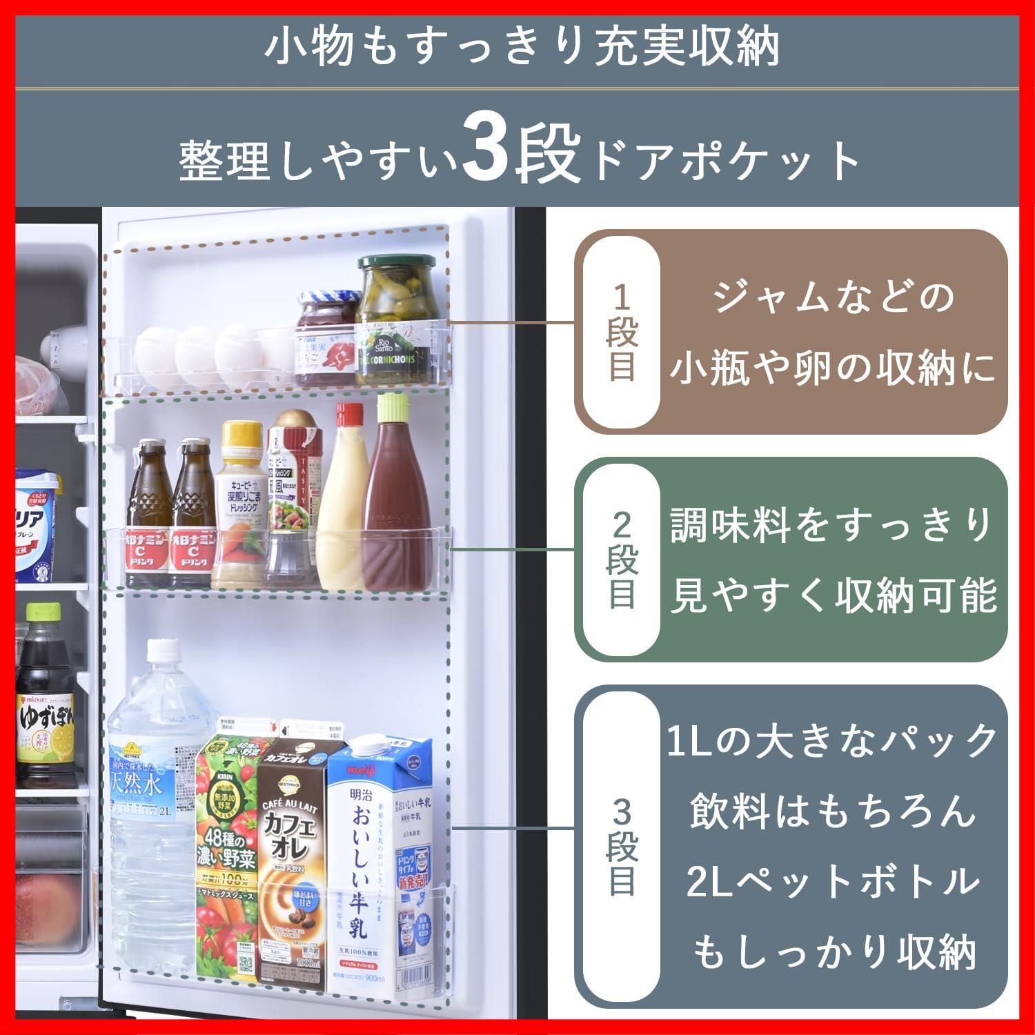 扉部分には牛乳パックはもちろん2Lのペットボトルもぴったり収納可能