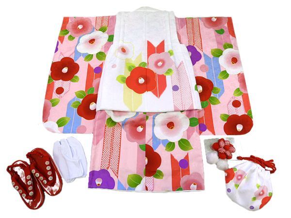 着物美人 送料込み! 子供被布セット 白 ピンク 椿 m503229
