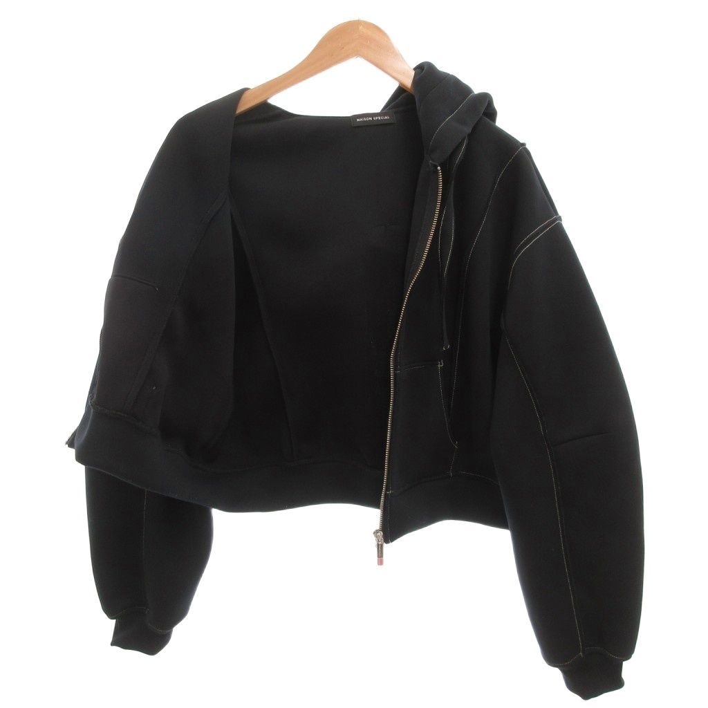 メゾンスペシャル MAISON SPECIAL カラーステッチダンボールフーディ パーカ ジップアップ 長袖 F 黒 ブラック |AE