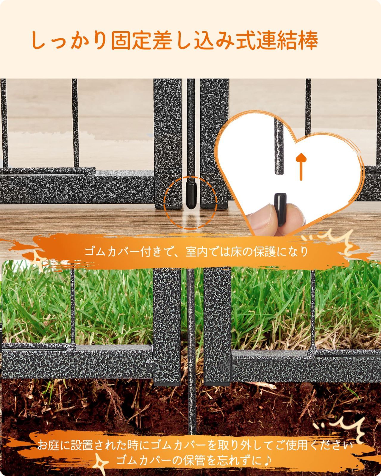 【高品質・高耐久性】粉体塗装が実施された柵が傷に強く、耐久性と防錆性に優れます。変形、バリを極力抑え、長持ちします。室外使用の場合は、連結棒を地下に差し込んで、安定性を一層向上させます