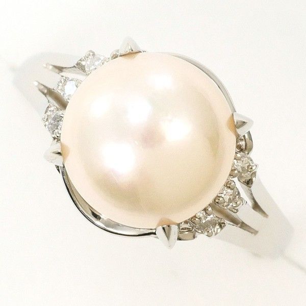 PT 900 リング ring 指輪 9号 パール 真珠 約9 mm ダイヤ 0.05 総重量約4.7 g