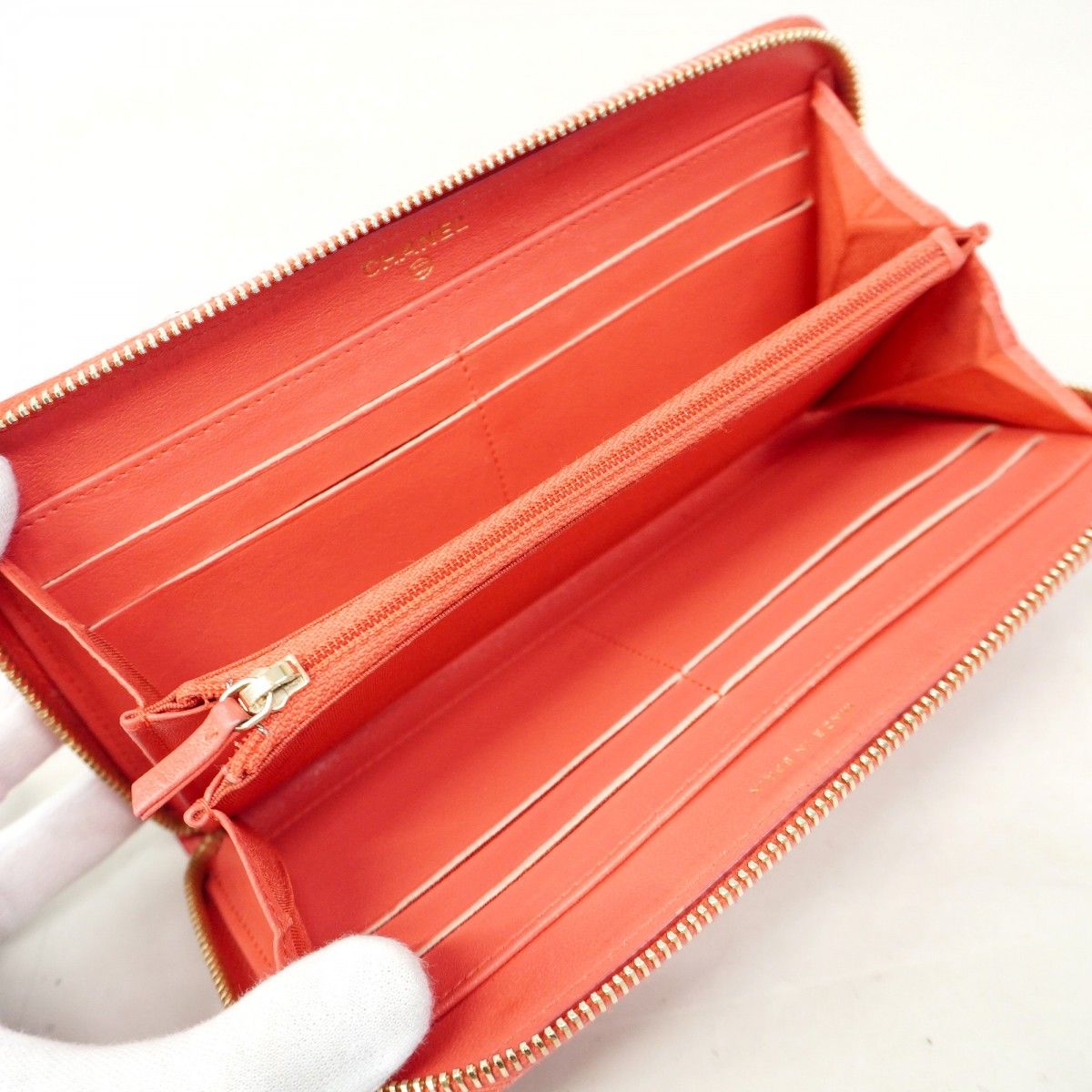 5 ic 2985-h シャネル 長財布 Vステッチ ラムスキン ピンク ゴールド金具 レディース
