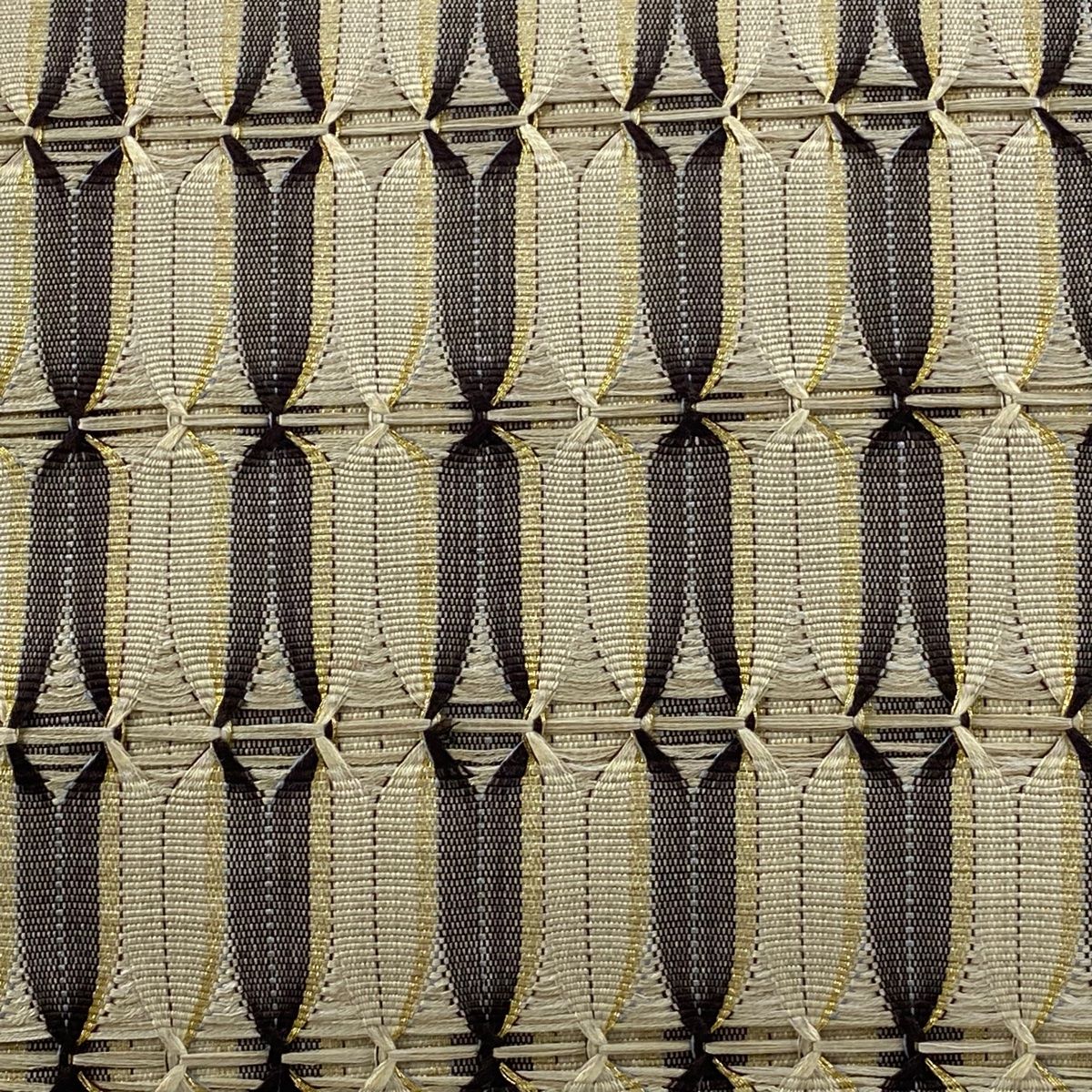 名古屋帯 秀品 八寸名古屋帯 松葉仕立て 幾何学 縞 金糸 ベージュ 正絹