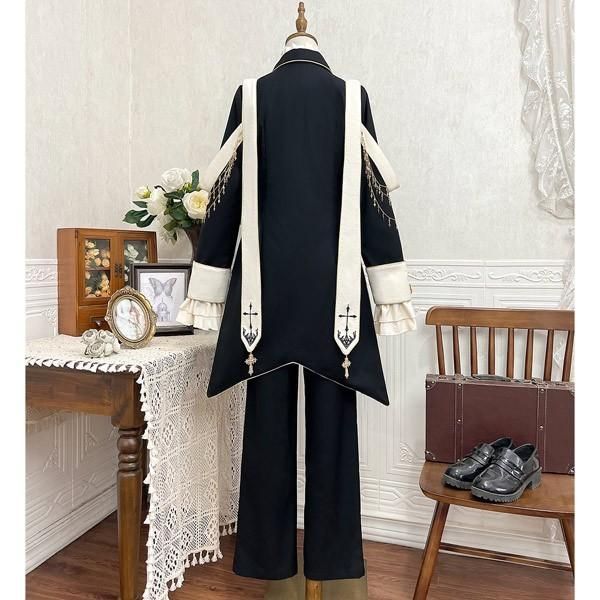 王子風ロリータ 神父風 少年装 4点セット 中世ヨーロッパ イギリス風 長袖 上品 エレガント 男装 王子装 王子系 リボン フリル レトロ風 コスチューム