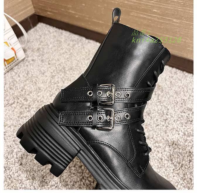ショートブーツ レディース 厚底 ローヒール 編上げタイプ 歩きやすい 痛くない ヒール6 美足 防寒 秋冬 PU 韓国 黒 通勤 大人 22.5 23.0 23.5 24.0 24.5 25.0 C0M3