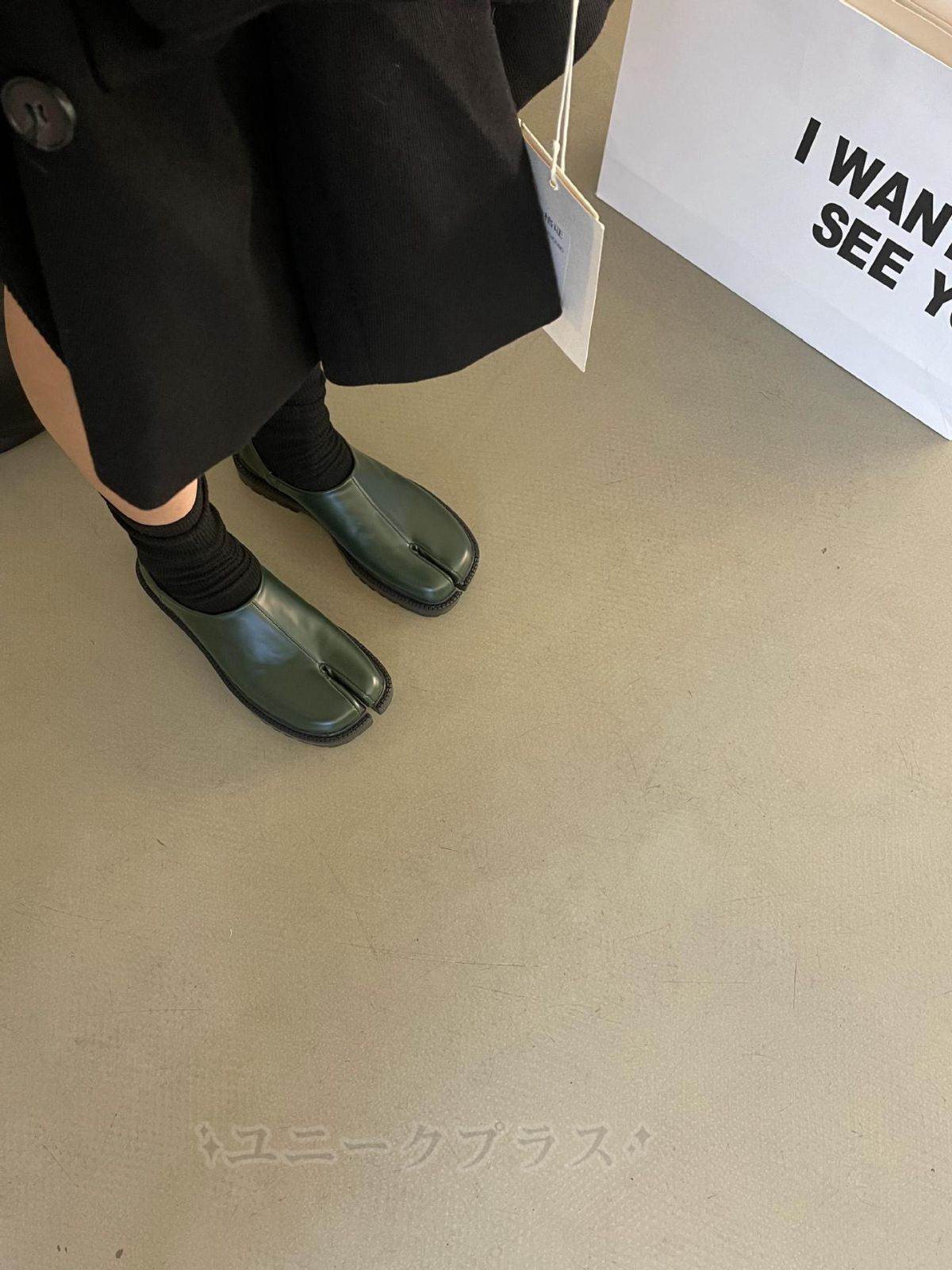 スプリットトゥ 足袋シューズ フラット ぺたんこ パンプス スリッポン レザー調 歩きやすい トレンド 韓国ファッション レディース おすすめ おしゃれ