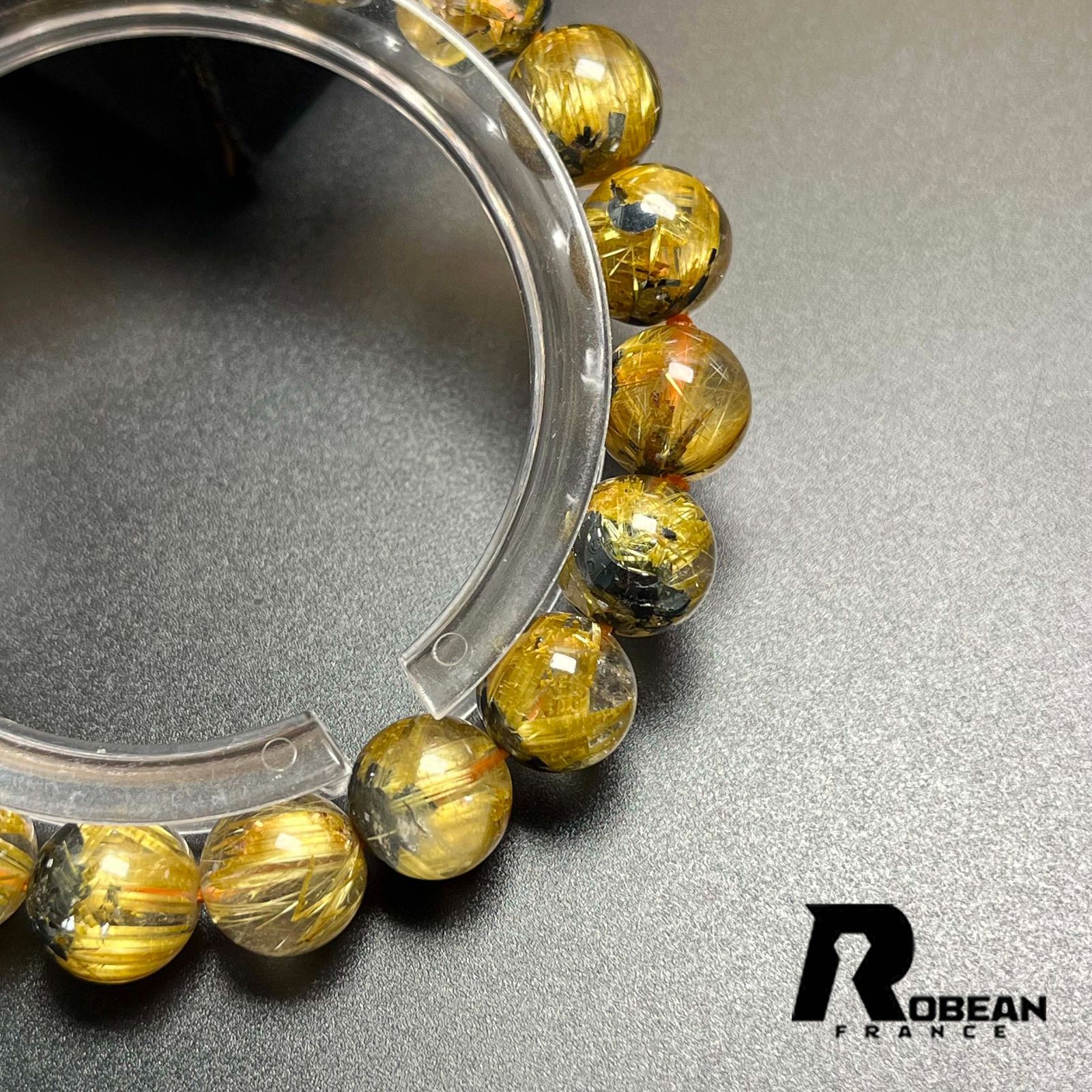 EU製 定価27万円 ROBEAN 太陽花タイチンルチル 黄金針水晶 金運 開運 ゴールド ブレスレット パワーストーン プレゼント 9.8-10.3 mm