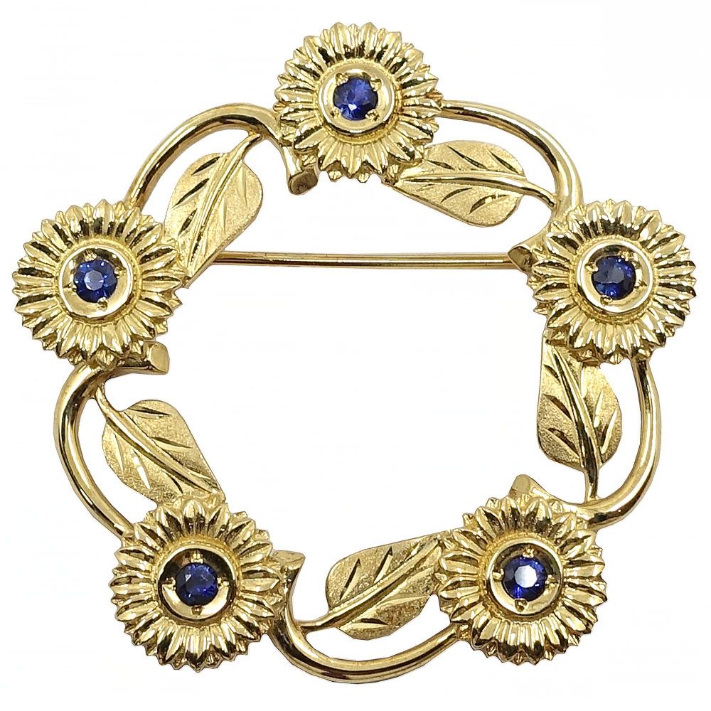 栄 ジュエリー ピンブローチ リーフ サファイア ストーン K 18 YG 女性 約7.7 g 洗浄済 本体のみ