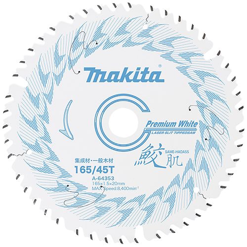 マキタ A 64353 鮫肌レーザースリットチップソー 外径165 mm 刃数45 集成材 一般木材用