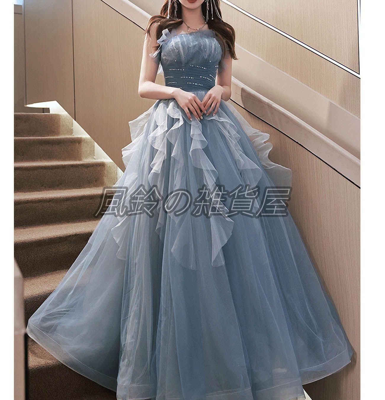 優雅なカラードレス、プリンセスラインの青は、特別な日を一層引き立てます。美しいブルーの色合いが、あなたの魅力を最大限に引き出し、どんなタイミングでも注目を集めること間違いなし。パフスリーブと長袖デザインが、上品さを加え、エレガントな印象を与えます。