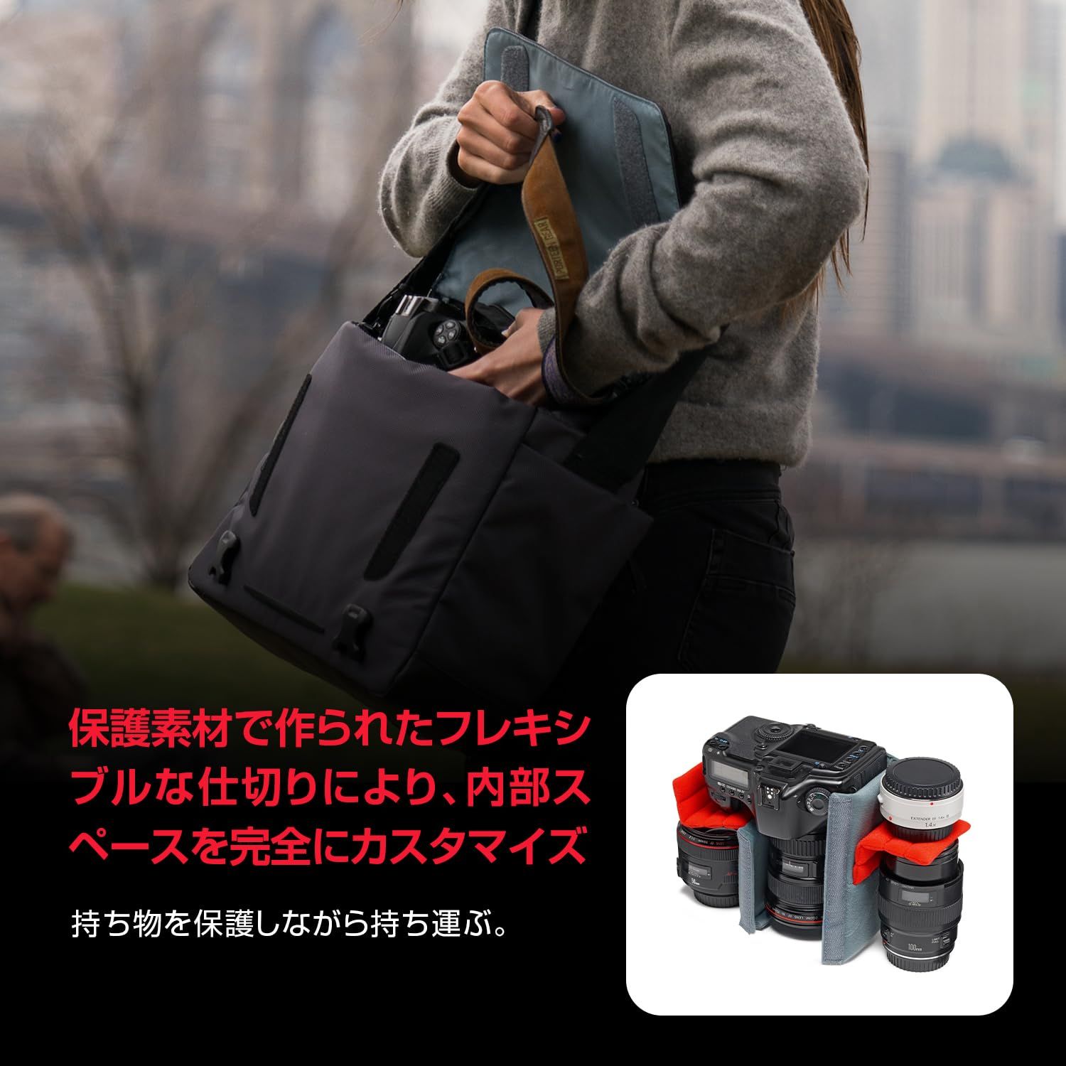 ■移動に適したカメラバッグManhattanコレクションは、撥水加工が施されており、クッション性の仕切りがある収納ケース、PC収納スペース、アクセサリーポケット有の優秀なメッセンジャーバッグです。