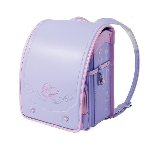 かわいいデザイン、繊細な刺繍、お姫様のような豪華な印象。 見た目コンパクト、でも大容量、A4ファイルがしっかり収納可能。 傷や汚れに強く、軽い高級素材のクラリーノが使用されており、6年間の使用でもほとんど変わらない風合いを保つ。