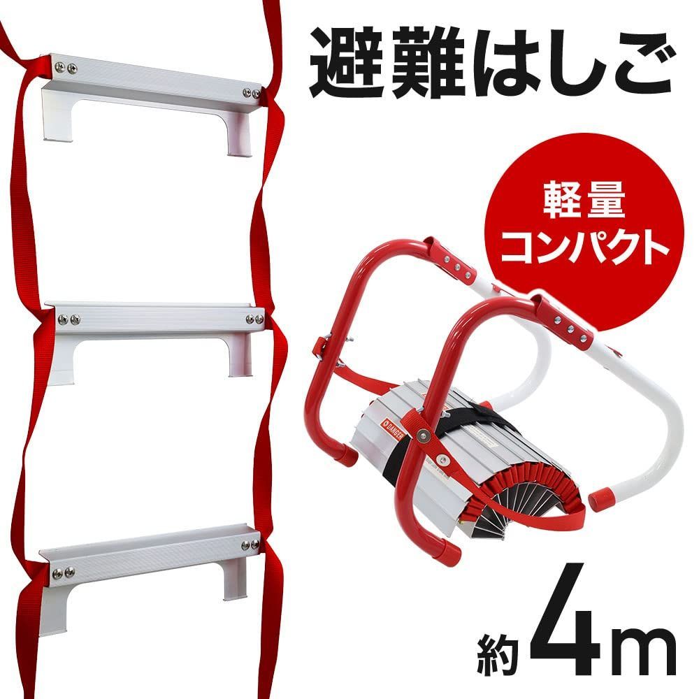 UPstore 防災はしご 避難用はしご 4 M 2階用 脱出用 緊急時 アルミステップ ベランダ 軽量4 5 kg コンパクト収納 折りたたみラダー 引っ掛けはしご