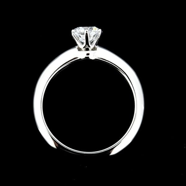 ダイヤモンドは6本の爪でしっかりと留められており、シンプルながら洗練されたデザインのダイヤモンドリングです。