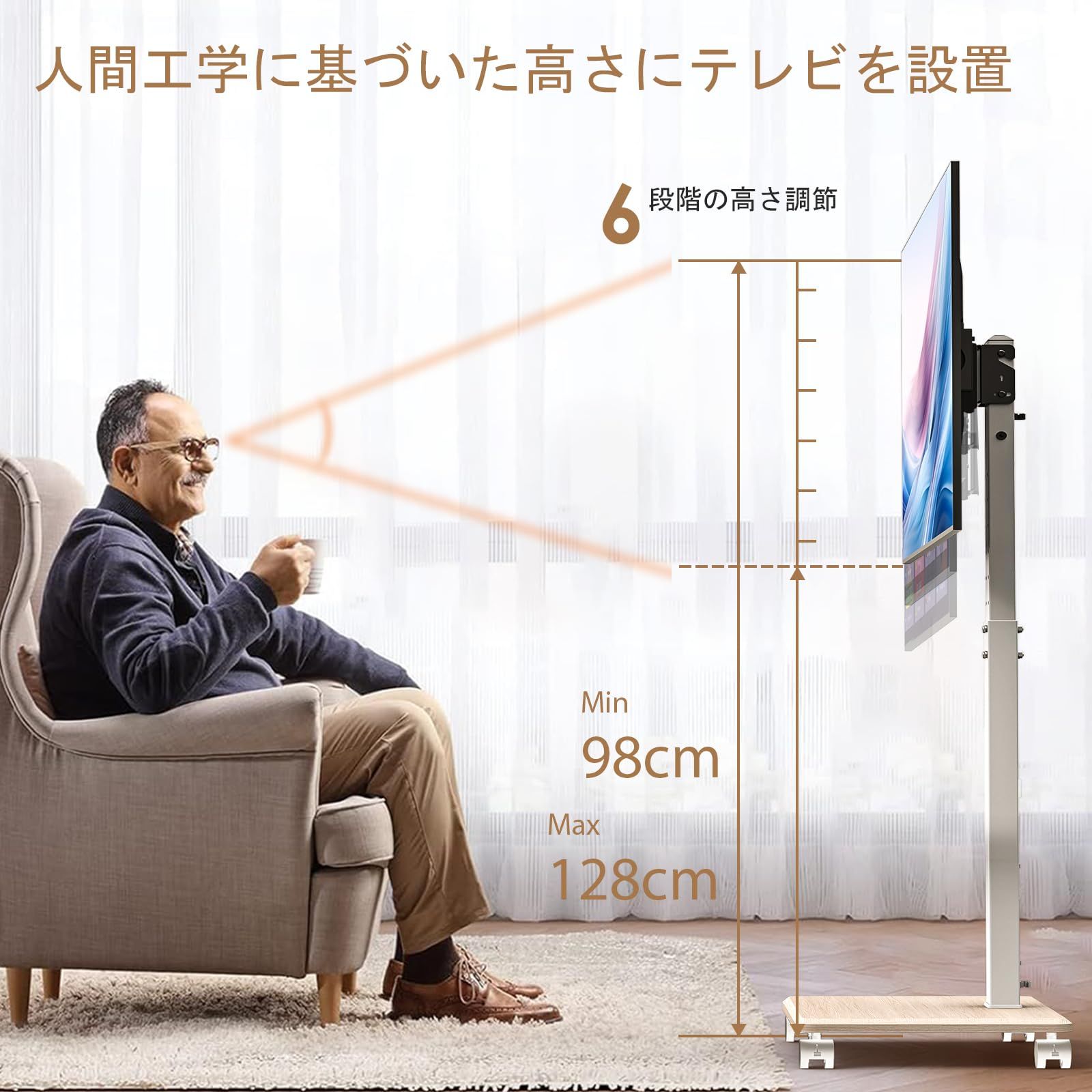 VESA 左右30度首振高さ調節耐荷重40 kg 縦横設置 37-75インチ対応 壁掛け テレビ台 stand リビング ベッドルーム用 ホワイト tv 移動式 ハイタイプ 壁寄せテレビスタンド キャスター付き テレビスタンド Ne