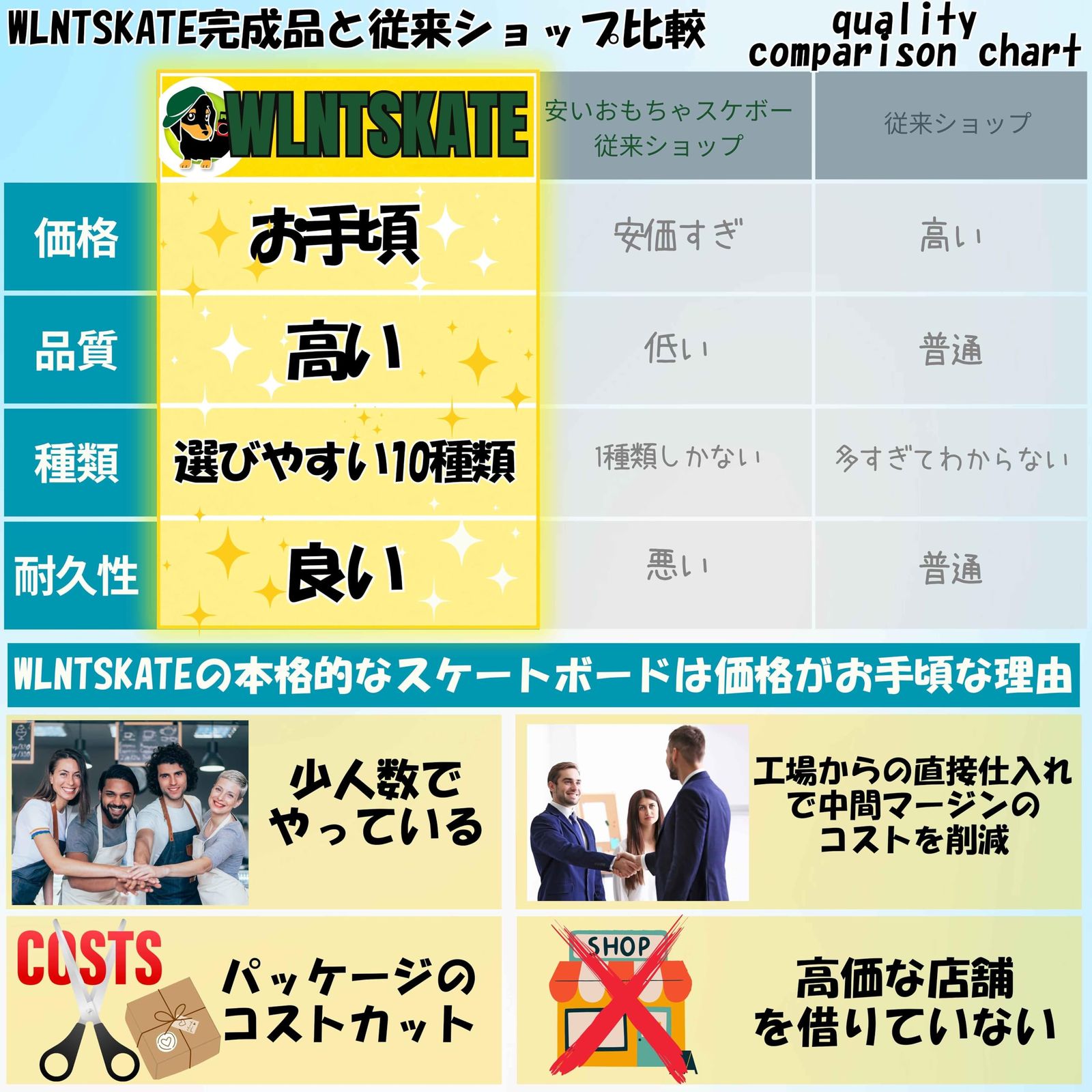 WLNTSKATEの最新のコンプリートスケートボードセットで、スケートボーディングのパフォーマンスの頂点を体験してください。初心者から熟練のスケーターまで対応したこのボードは、最高品質の7層ハードロックカナディアンメープルまたはwhite