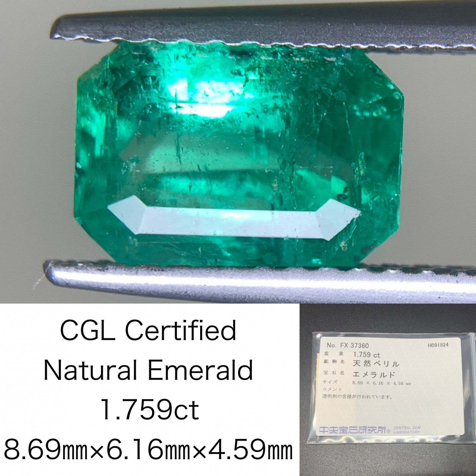 エメラルド 1.759 ct 宝石ソーティング付き 8.69㎜×6.16㎜×4.59㎜ ルース 裸石 2591 Y