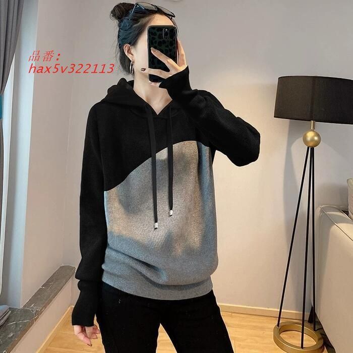 トップス ニット セーター フーディ レディース きれいめ かっこいい フェミニン カジュアル 切り替え 可愛い ゆった 大人 長袖 バイおしゃれ hax 5 v 322113