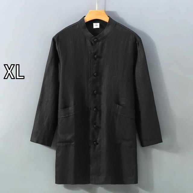 商品名:[XL]メンズ ファッション 服 男性用 オシャレ シンプル 大人 かっこいい 大きいサイズ ストリート 紳士服 リネン ミドル丈 シャツ ジャケット レトロ プレート ボタン フル リネン 生地 シャツ トップス 服