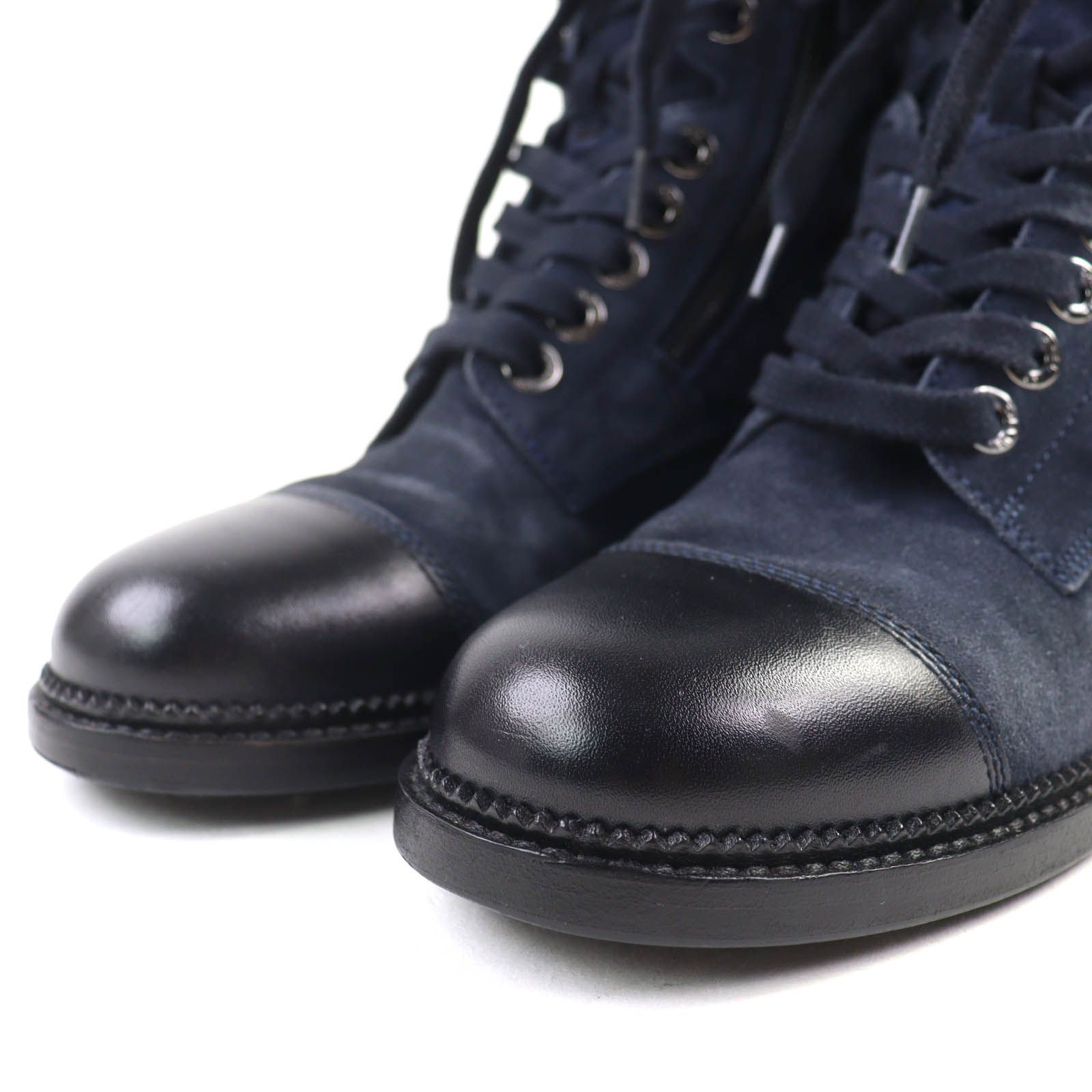 CHANEL シャネル G 33769 スウェード×レザー ココマーク マトラッセ サイドジップ レースアップ アンクルブーツ ショートブーツ ネイビー ブラック 38 イタリア製 レディース