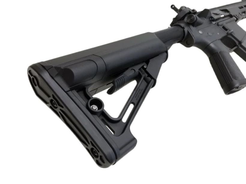 ガスブロック、11.5インチ・アウターバレル、アンビ・チャージングハンドルなどを完全再現!まさにマニア納得のリアリティです。アイアンサイトはマテックタイプリアサイトとKACタイプ・新型フリップアップフロントサイトを装備。さらに長さを6段階調節可能なSTRタイプ・ストックは金型から新規製作されています。