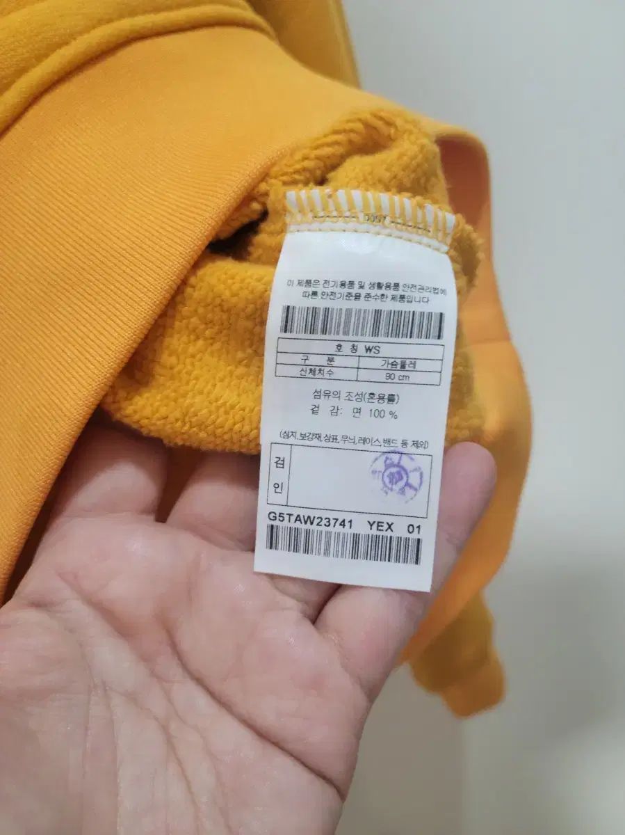 色は明るい黄色で、かわいいクマの刺繍と腕のパッチデザインが見どころです。