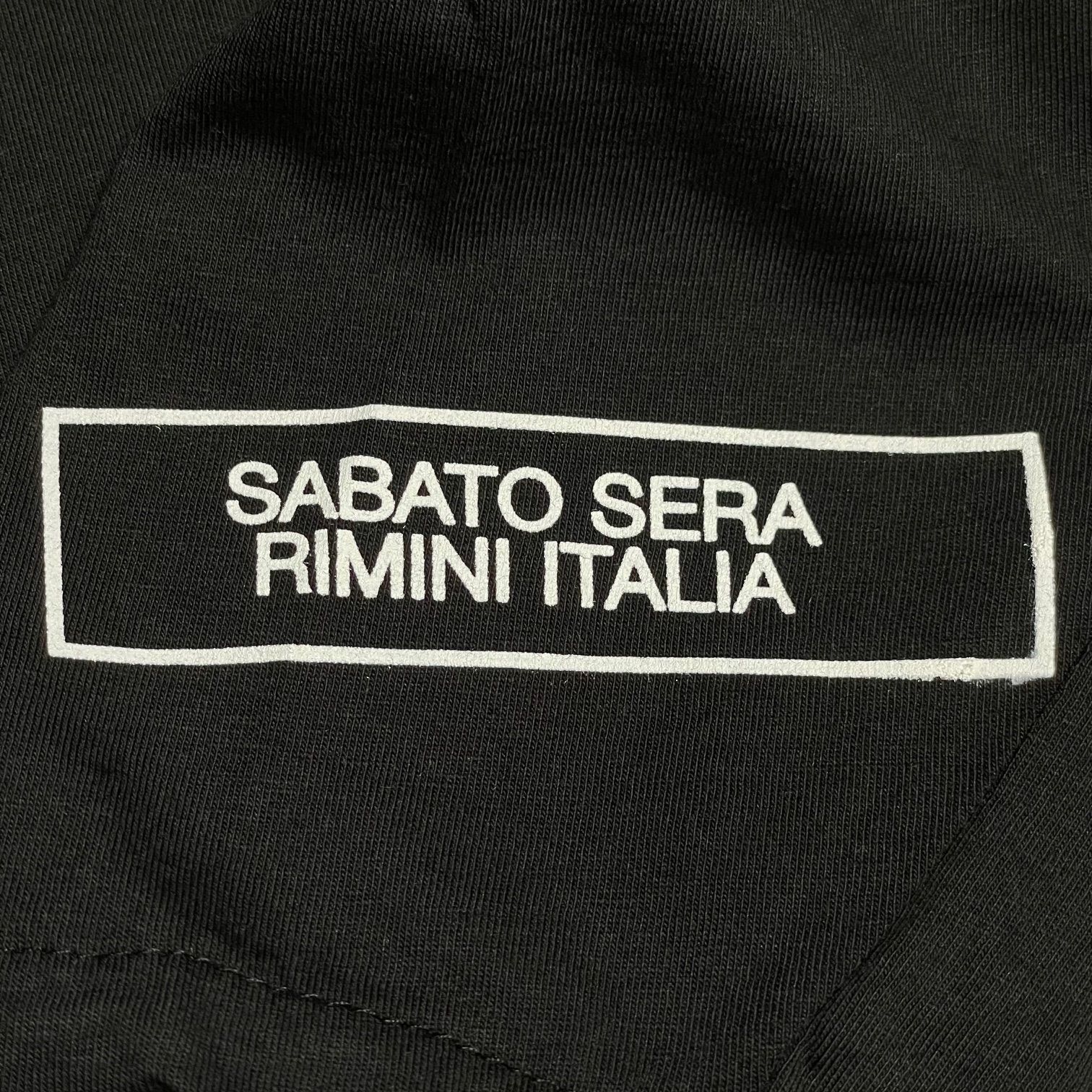 マリアのTシャツはハンドメイド製で柔らかい素材で襟や袖、裾などをねじって縫い込むなど細部までこだわっており、正面にブランド名のMAGLIAの文字と左袖口に「SABATO SERA RIMINI ITALIA」というイタリア語で土曜の夜とマリア発祥の地であるイタリア・リミニの街の名前が入ったオシャレなデザインになっております。