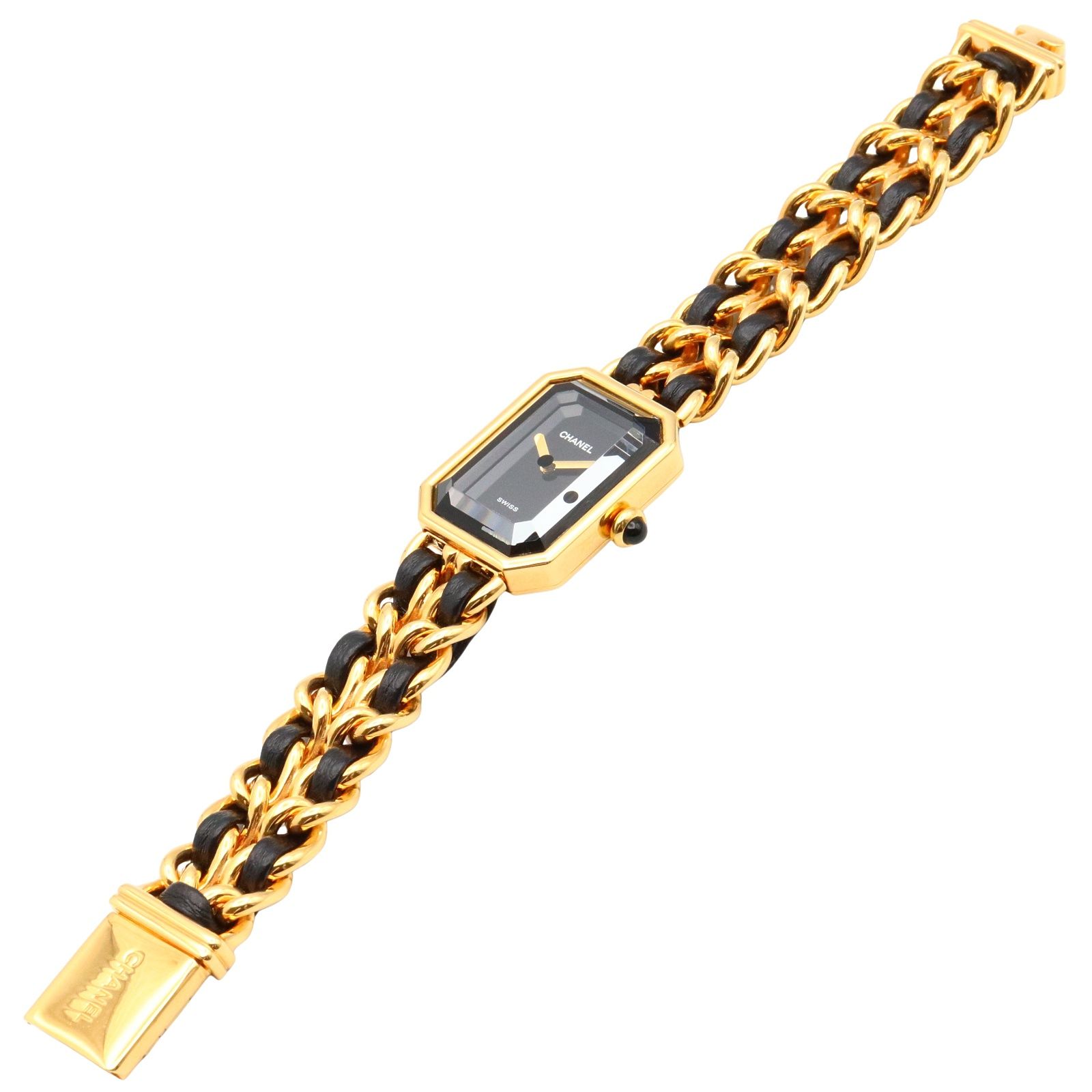 シャネル CHANEL 腕時計 プルミエールS H 0001 ブラック GP ゴールドメッキ レザー レディース A