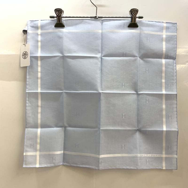 【新品】HERMES ハンカチーフ ジャガードH ブルーシエル[240092315068][92]