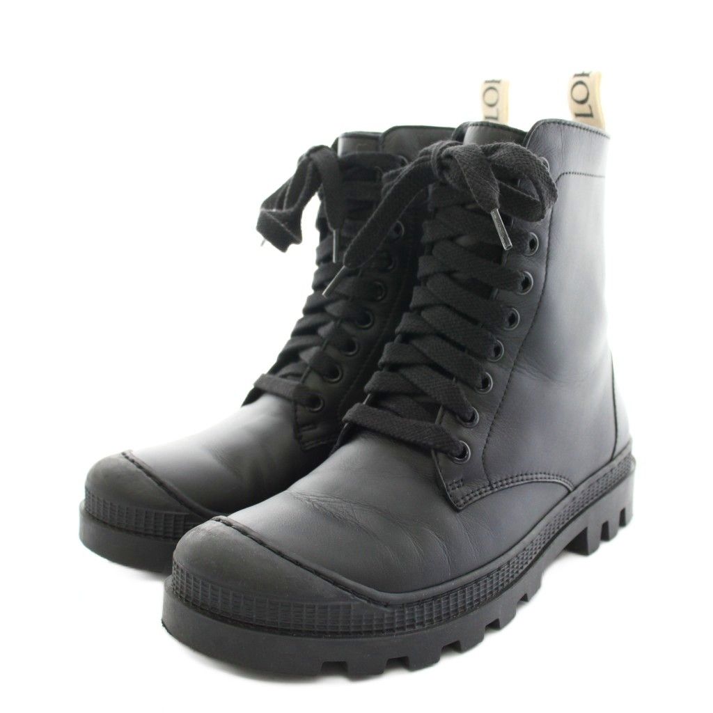 ロエベ LOEWE コンバットブーツ ショートブーツ レザー 36 黒 ブラック 白 ホワイト 590321 YT