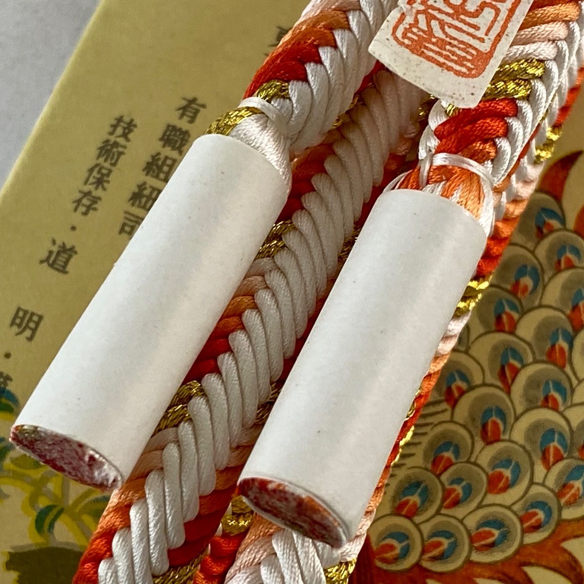 帯締め 無形文化財 有職組紐 道明 斜縞 丸胡蝶 金糸 朱色 正絹 和装小物