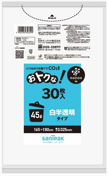20点セット CU44 オトクナ 45L 白半透明 日本サニパック ゴミ袋 ポリ袋