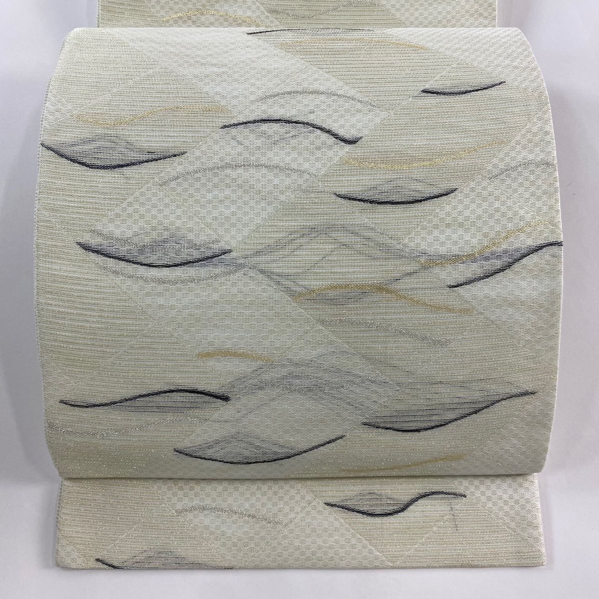袋帯 秀品 夏帯 幾何学模様 金銀糸 クリーム 六通 正絹
