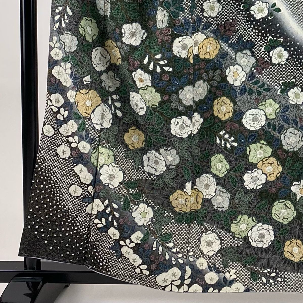 訪問着 身丈159.5 cm 裄丈66 M 袷 辻が花柄 金通し 絞り 黒灰 正絹