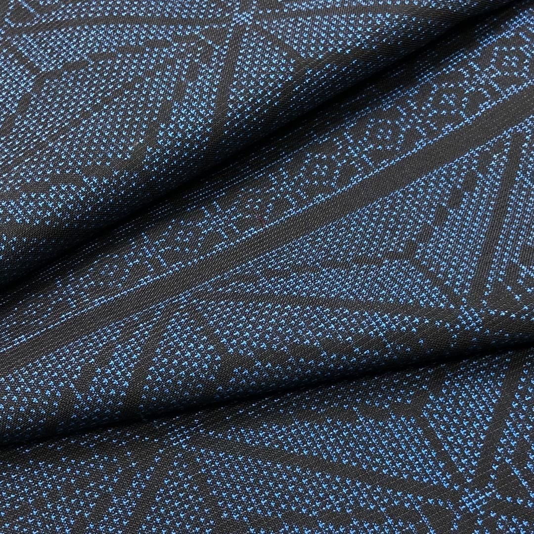 藍泥染のお色味に麻の葉模様がデザインされた素敵な柄裄のお品でございます。