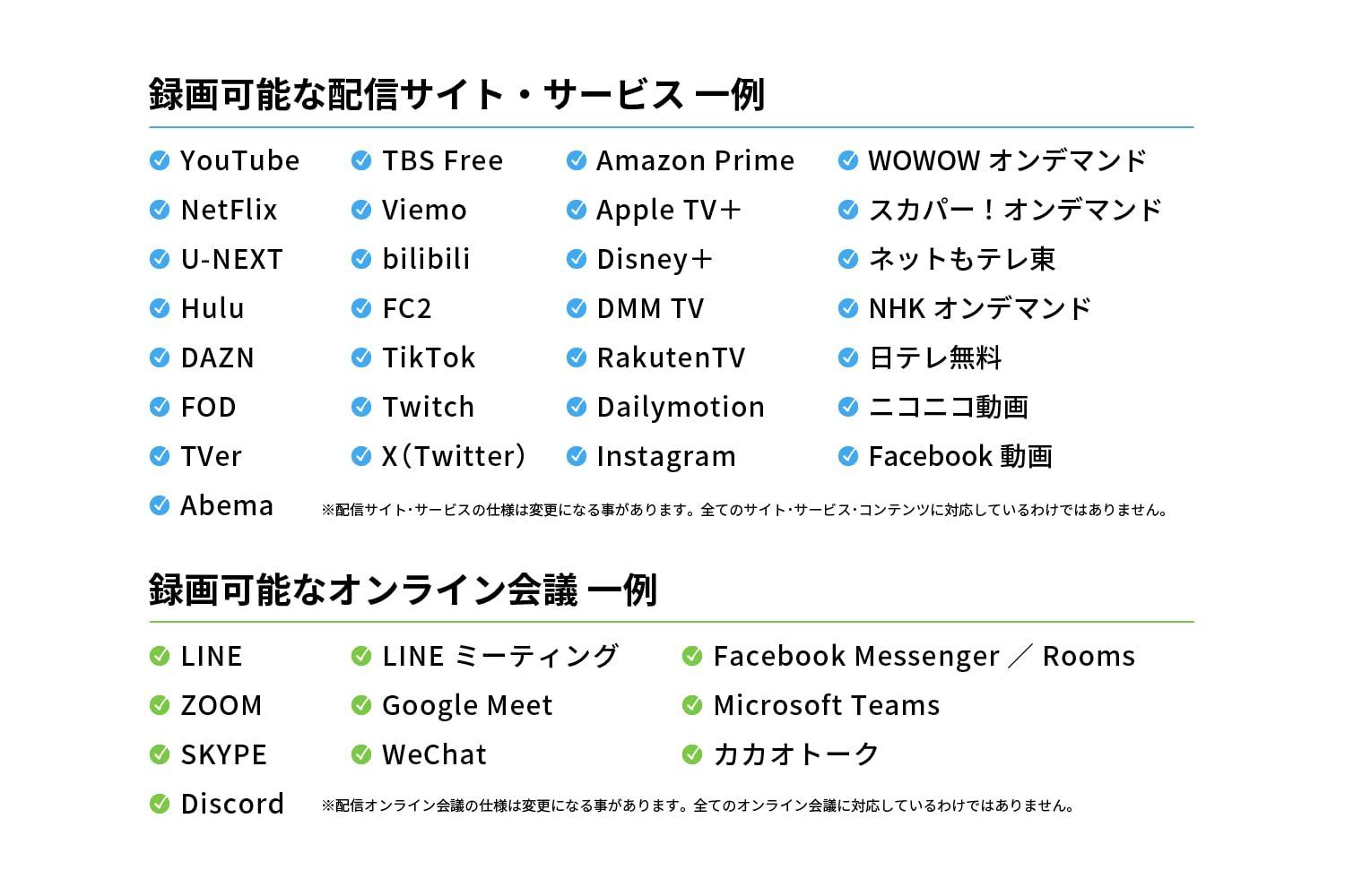 《 PC画面をなんでも録画 》 利用例)再生中の動画、Web動画、ストリーミング生放送、プレゼン作成、ゲーム実況、TV電話・オンライン会議、外部接続カメラ/マイクからの録画録音ほか。予約録画も。