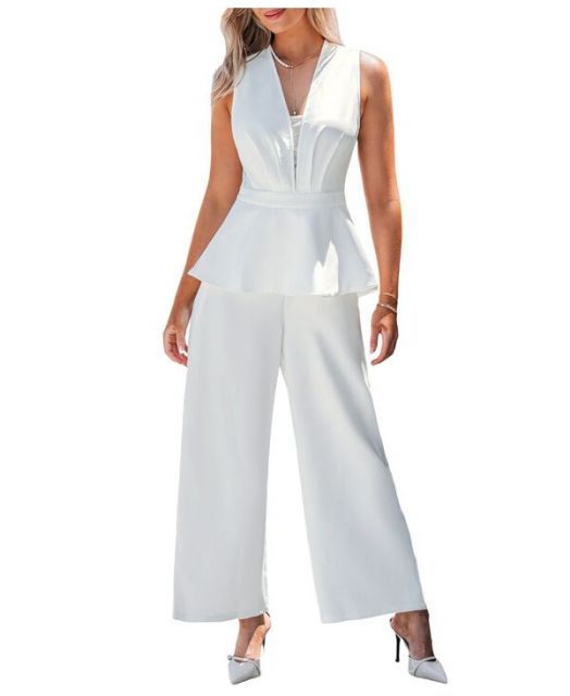 カップシー レディース ジャンプスーツ トップス Women s Elegant Sleeveless Jumpsuit White