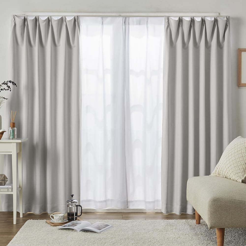 ホワイト_100×200cm ベルーナ(BELLUNA) カーテン 4枚セット 遮光 1級 遮熱 uvカット 遮光カーテン 4枚セット おしゃれ 北欧 シンプル 幅100 タッセル付 カーテン2枚 レース2枚 2枚組 アジャスターフック付 洗える (285263-205)