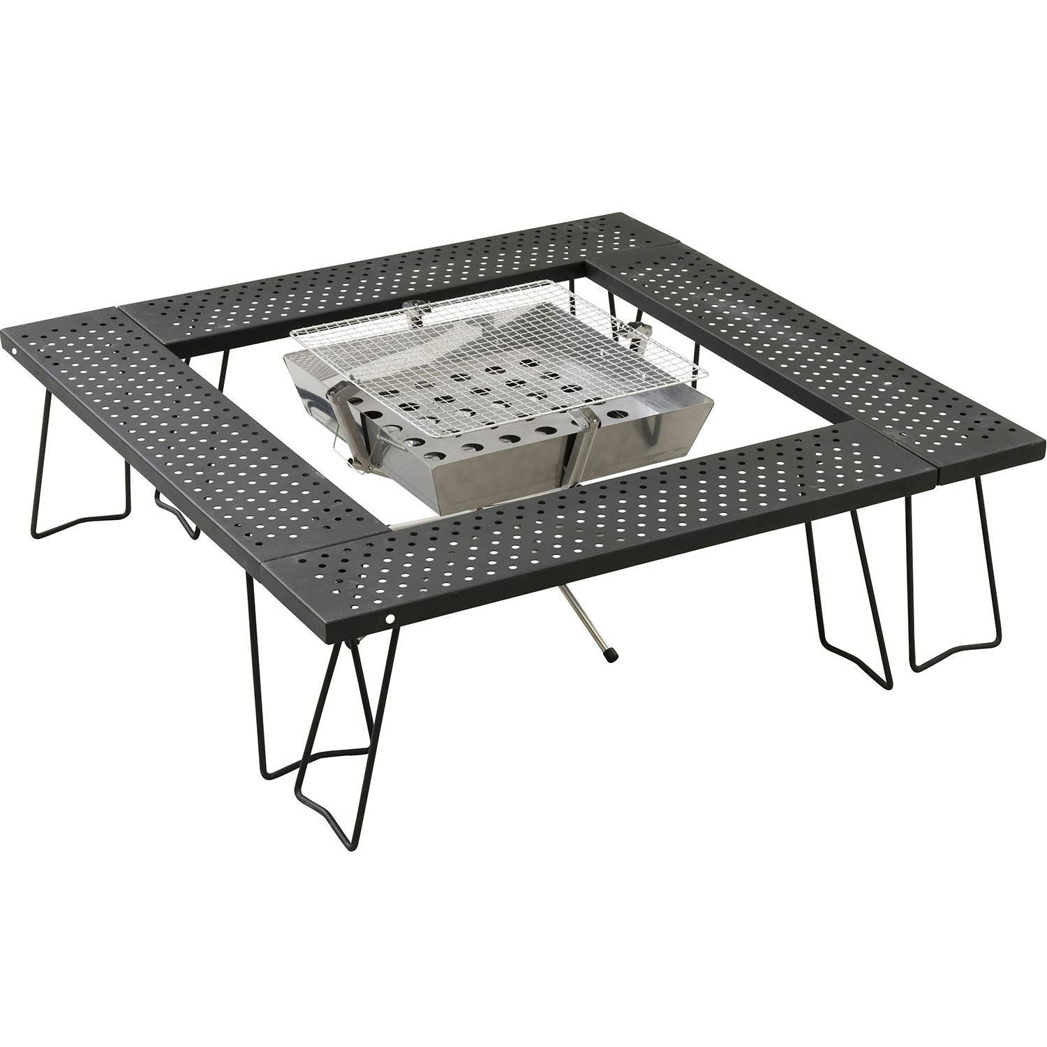 [キャンパーズコレクション 山善] テーブル キャンプ アウトドア (焚き火 バーベキュー) 組み合わせ自由(囲炉裏スタイル ローテーブル) ブラック TT-8366