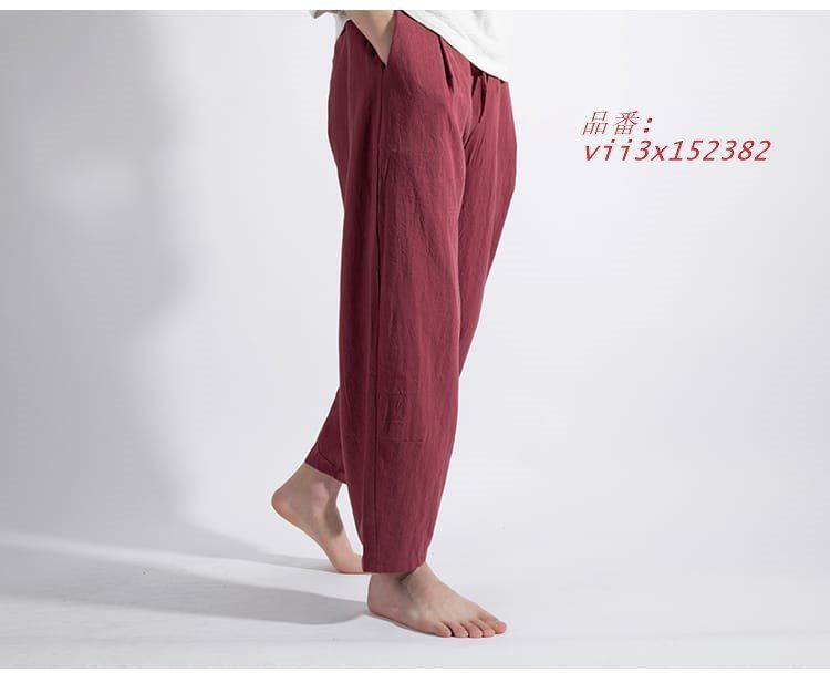 チャイナパンツ クロップドパンツ メンズ 男性用 中華風 カンフーパンツ 綿麻 春夏 チャイナボタン イージーパンツ 薄手 vii 3 x 152382