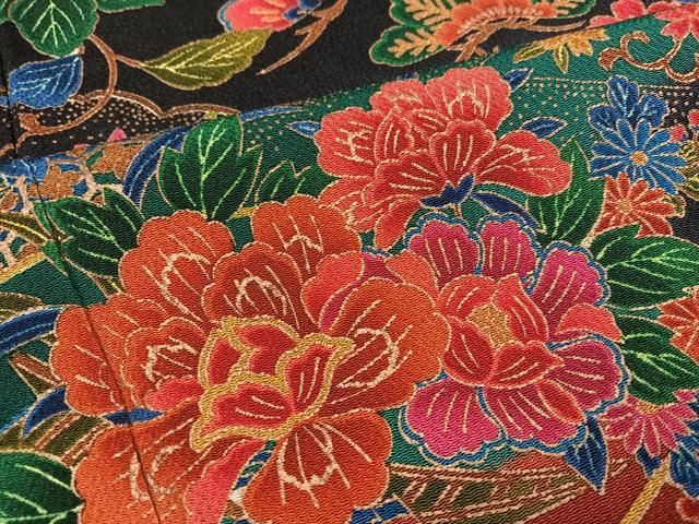 平和屋着物 豪華振袖 花蝶文 暈し染め 黒地 鬼しぼ縮緬 正絹 ph