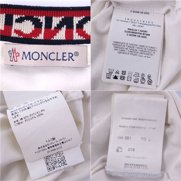 美品 モンクレール MONCLER Tシャツ 2018 カットソー ショートスリーブ 半袖 コットン トップス メンズ L ホワイト