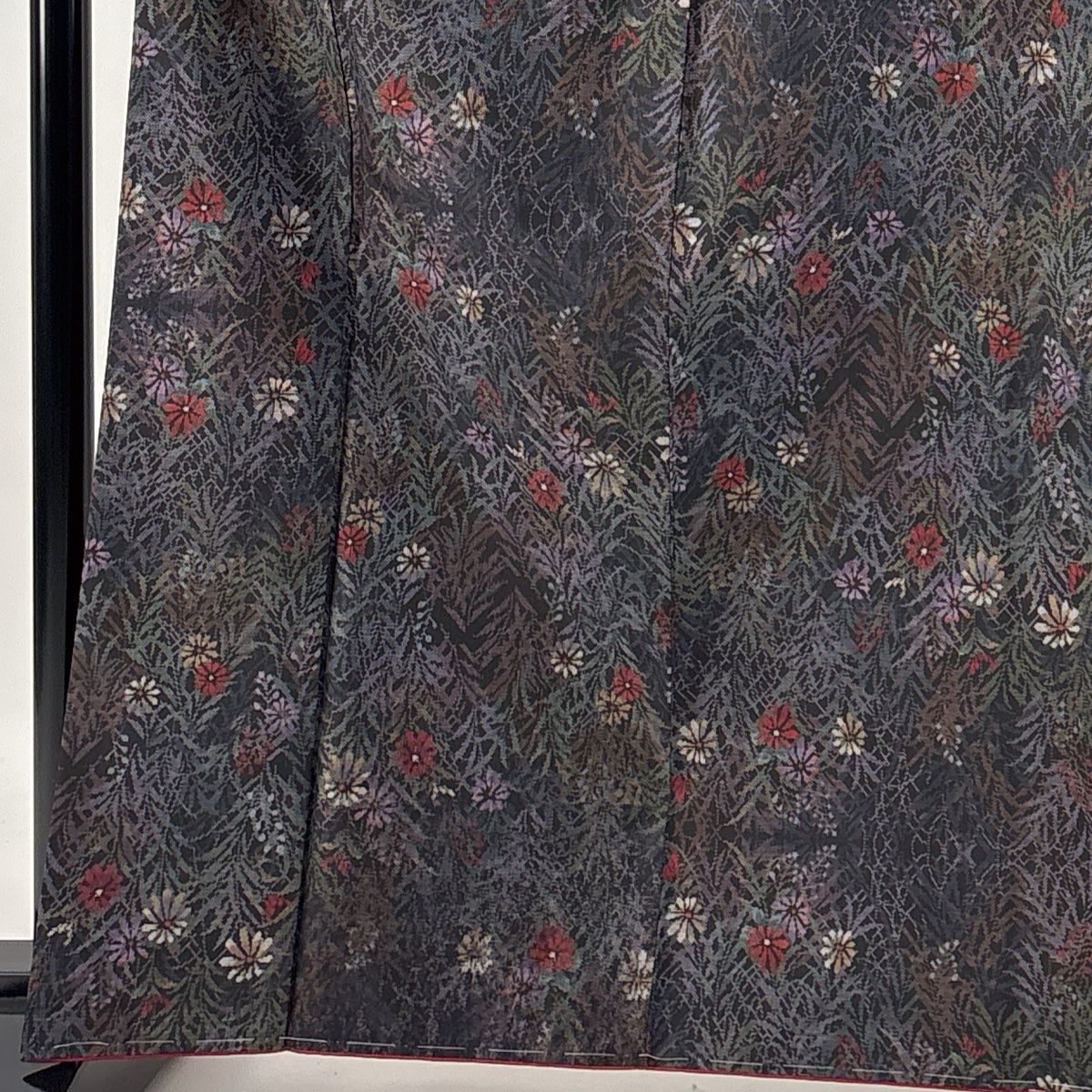 紬 身丈163.5 cm 裄丈65 M 袷 草花 焦茶色 正絹 秀品