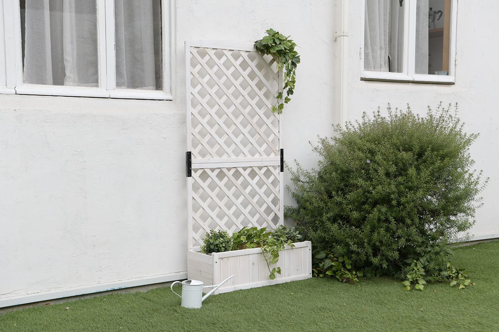 リビングアウト(Living Out) プランターラティス 木製 ホワイト 幅71.5×奥行30×高さ148cm プランター付きラティスフェンス 天然木使用 ガーデニング モダンにお庭を演出 壁面緑化 目隠し